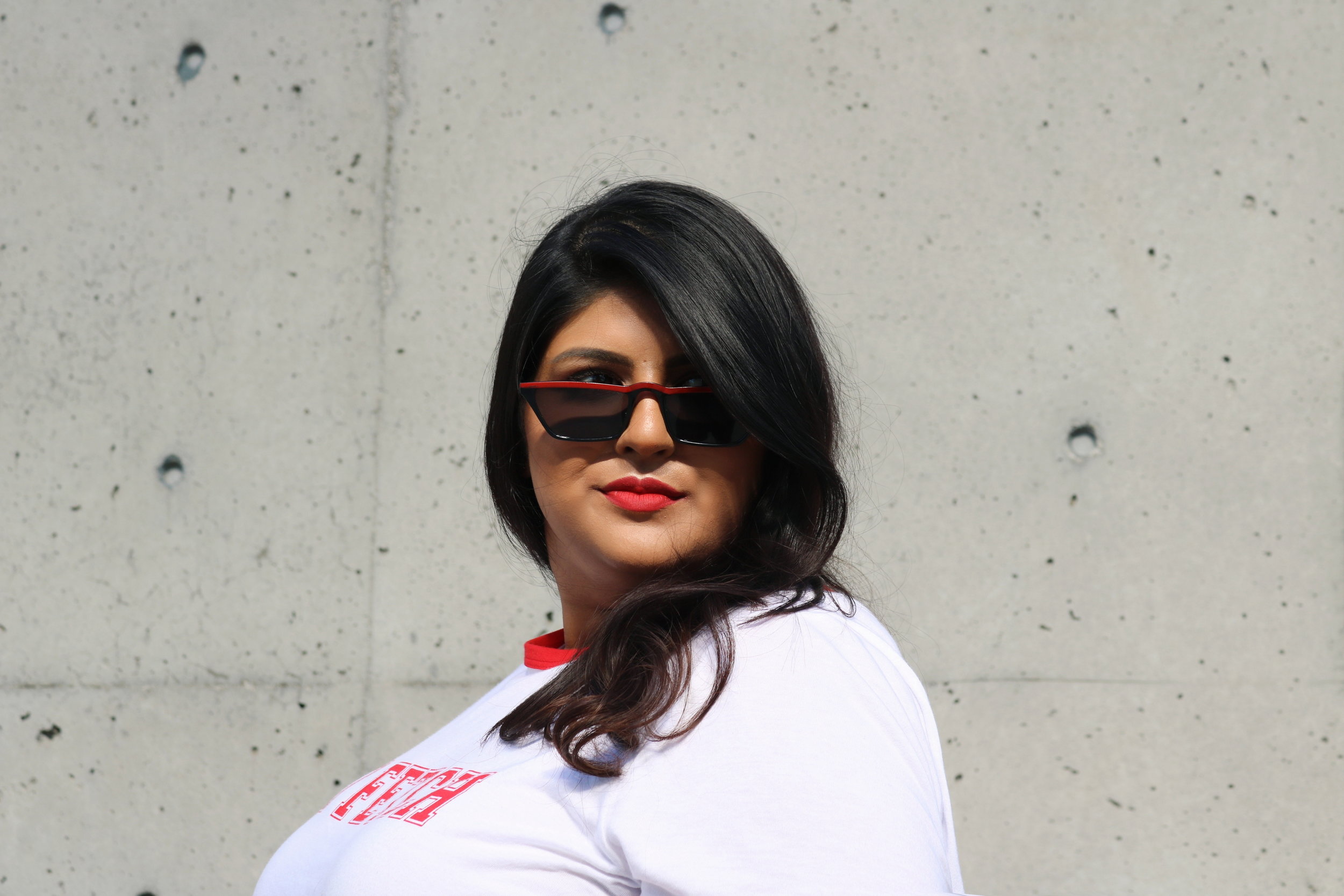 The shirt (size 2X) is from Fashion Nova Curve. I love the fact that its a cotton blend, making it light and comfortable for the summer. The red piping on the neckline, and sleeves matches the writing on the shirt.